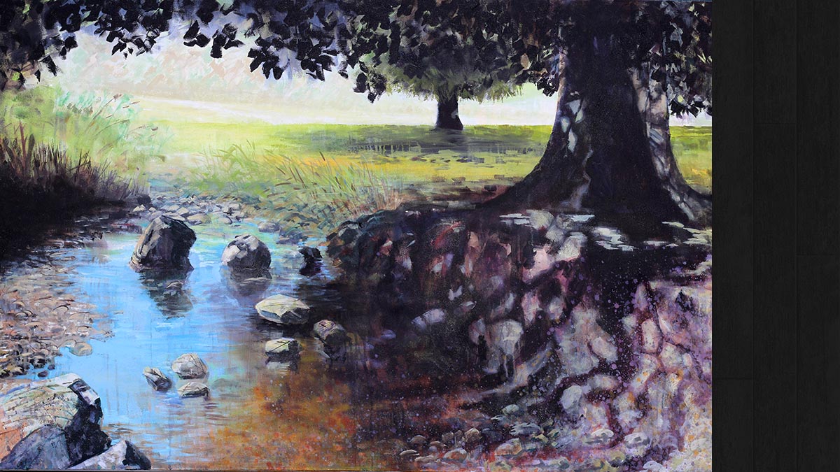 Acrylic on canvas. Limited edition print available- further details available on request.